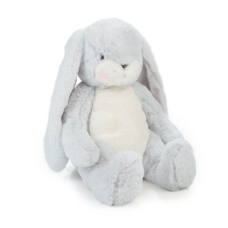 Little Nibble is ready for big hugs from his lucky owner. This sweet stuffed animal features long, floppy ears lined with velour, and super-soft fur in light gray and warm white. He is sure to be a favorite stuffed bunny for wee ones and adults alike with his heirloom quality and timeless appeal.